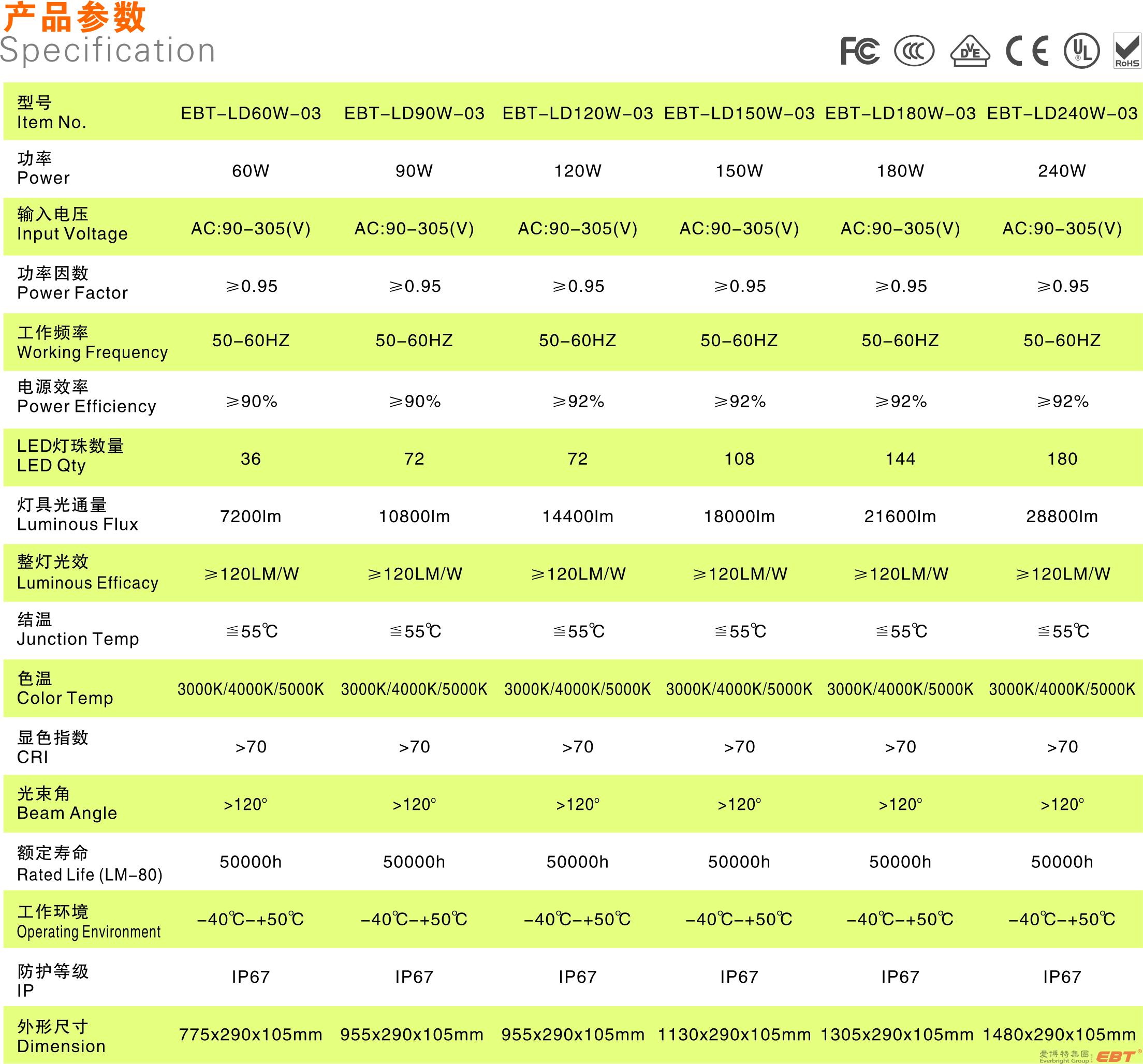 產(chǎn)品描述:采用國(guó)際知名品牌芯片,高亮度,低光衰; 防水防塵防腐蝕; 采用通孔結(jié)構(gòu)散熱,使用壽命長(zhǎng); 科學(xué)配光,適用多種場(chǎng)所。