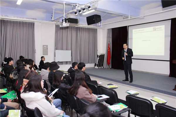 乾港集團(tuán)美博士環(huán)??偨?jīng)理常凱??偅瑸樵谧膸熒鷤兘庾x了大綠色環(huán)保家居、室內(nèi)污染物治理技術(shù)、方式方法及產(chǎn)品介紹等相關(guān)空凈治理知識(shí);秦皇島新型材料科技有限公司總經(jīng)理李勇劍李總則為在座師生帶來(lái)了綠色材料研發(fā)及生產(chǎn)使用工藝等內(nèi)墻環(huán)保壁材方面的知識(shí)。