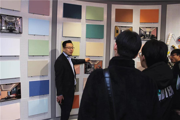 參觀完總部后,在解說(shuō)員的帶領(lǐng)下,河北環(huán)境工程學(xué)院一行人來(lái)到了我公司品牌體驗(yàn)展示中心。對(duì)于我司相關(guān)環(huán)保產(chǎn)品大家都還比較陌生,常凱??偂⒗钣聞羁偡謩e對(duì)室內(nèi)污染物治理展廳、企業(yè)綠色裝飾材料展廳進(jìn)行了細(xì)致介紹,讓大家對(duì)凈化原理及環(huán)保材料等有了一個(gè)全新的認(rèn)識(shí)!